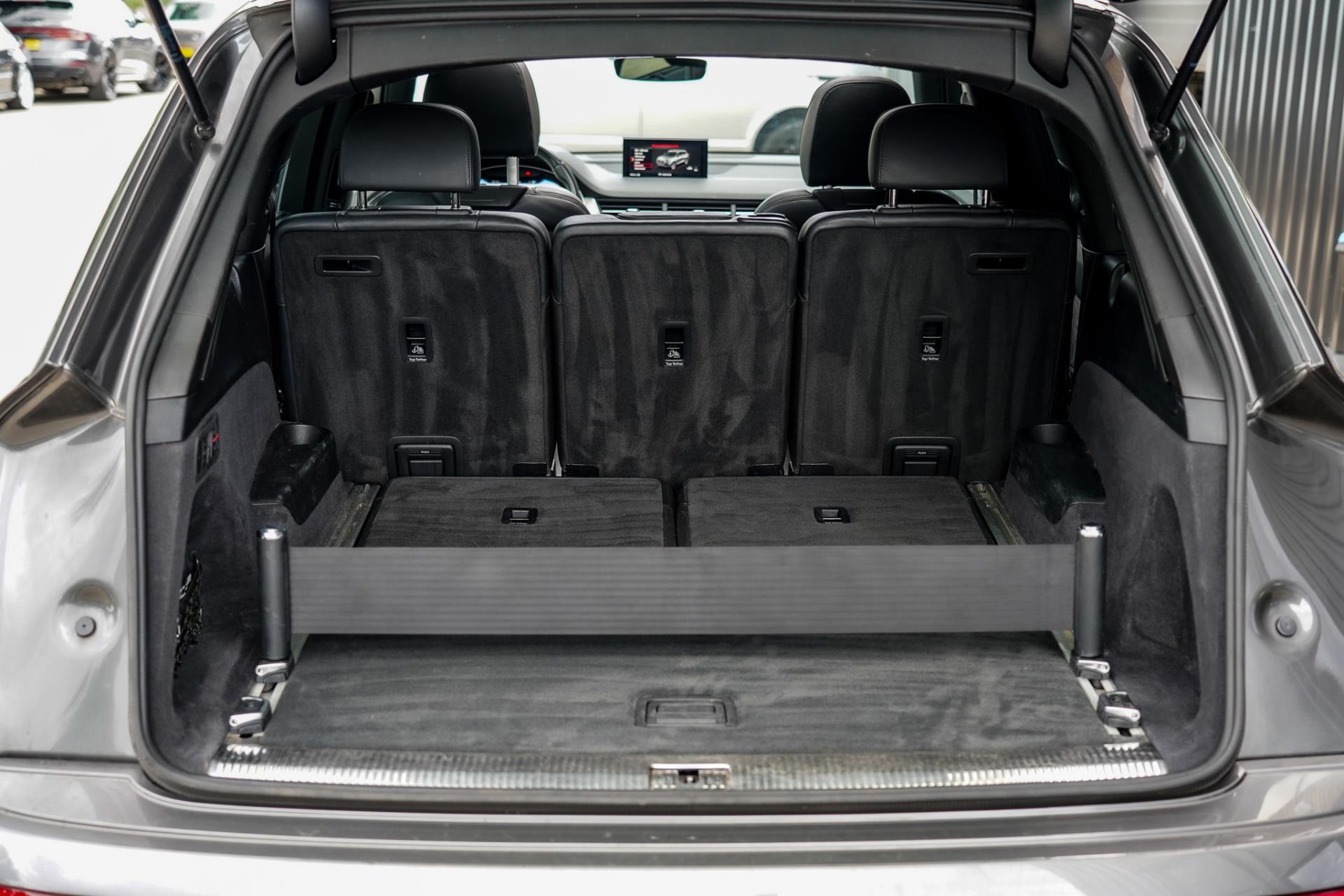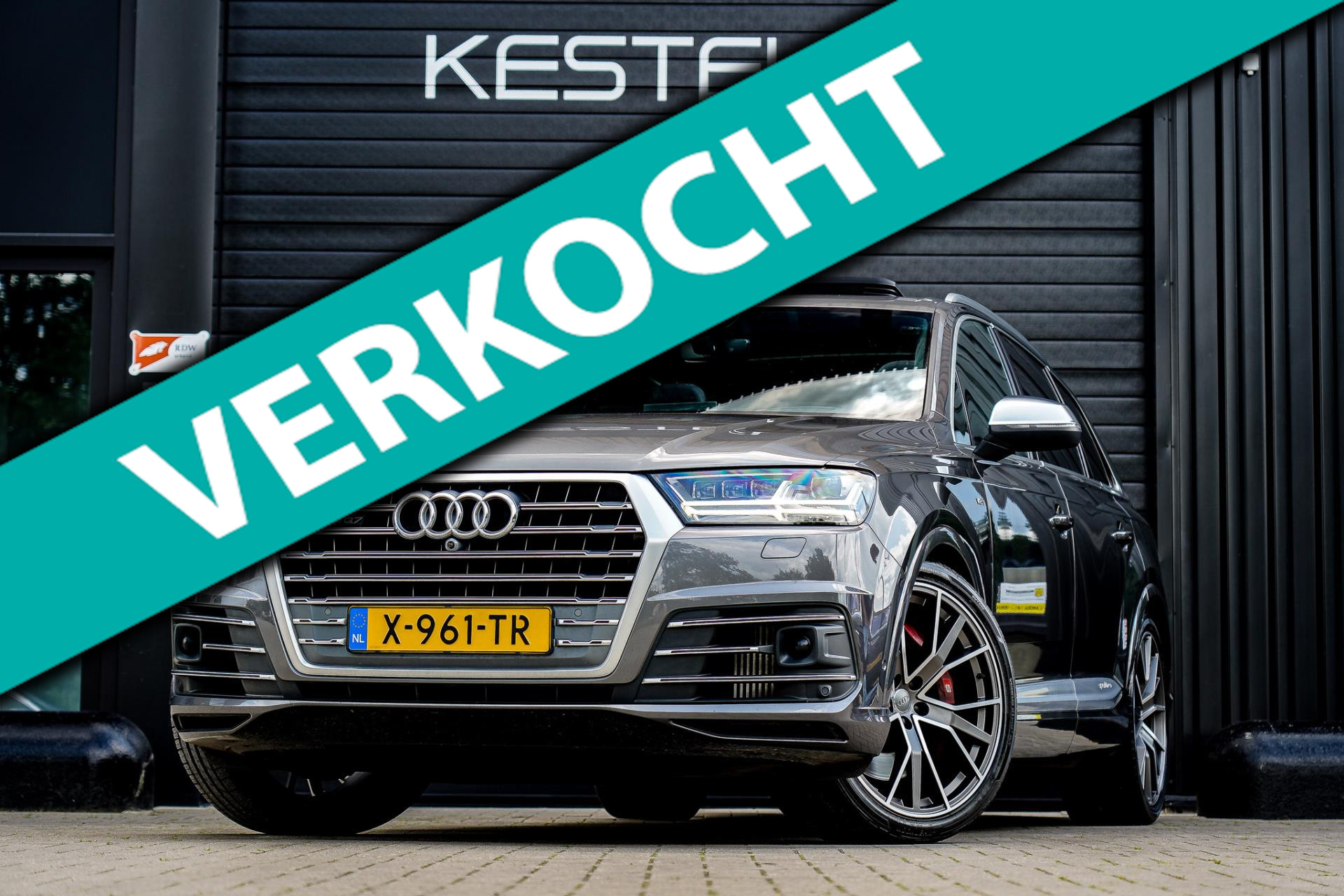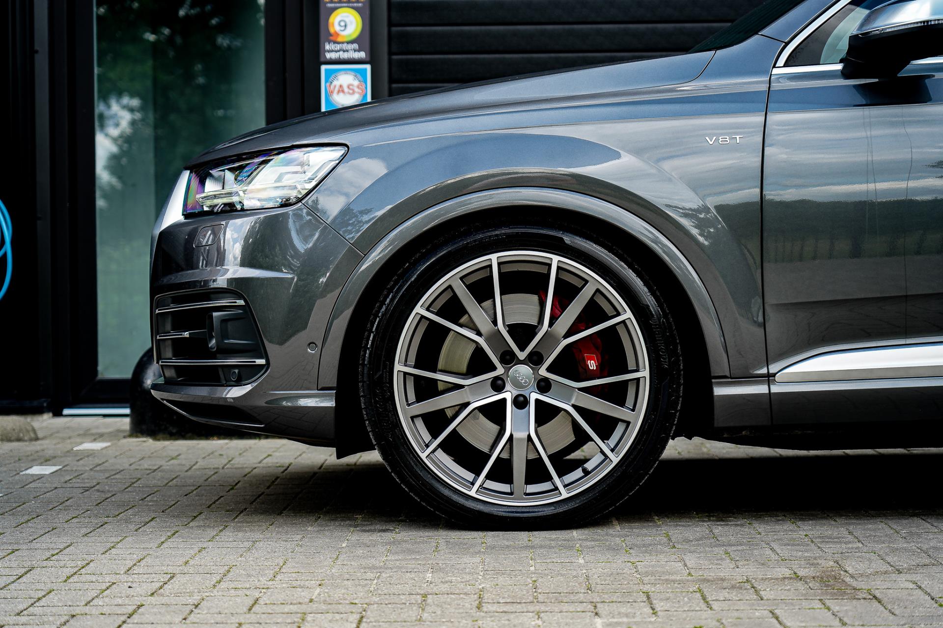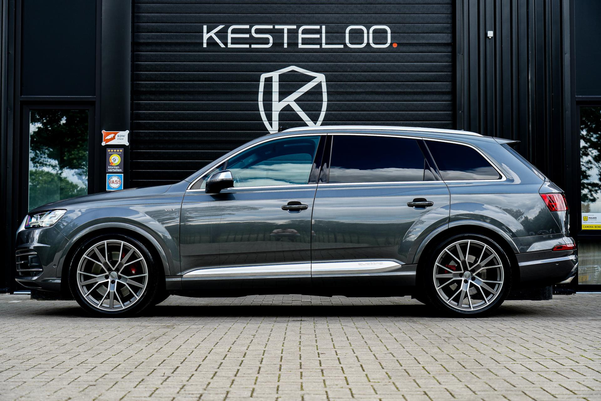 Nieuw in voorraad, prachtige 7-persoons uitgevoerde SQ7 in de kleur Samoeraigrijs metallic met zwart vollederen RS-interieur en geruit stiksel.